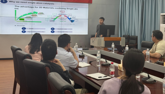 在此次学术报告中,刘教授详细阐述了三位一体的研究方法,并分享了围绕光电催化材料取得的一系列创新性成果:团队设计出含sp杂化的非线性二维结构,经反复实验,首次成功合成大孔石墨单炔,为材料科学的进一步发展开辟了新路径。吴教授介绍了二维半导体点缺陷形成及对材料性质的影响,对比谱学测量法和直接成像法这两类点缺陷表征技术。同时研究固态重凝硫法和碘辅助法制备低缺陷二维半导体的生长机理。最后,探讨二维半导体在缺陷识别和抑制领域的机遇、挑战,并展望未来方向。此次报告为相关研究提供了新思路,助力先进二维材料在高性能电子器件领域应用。报告会上,学院师生和两位教授进行了热烈的交流,大家广受启发,收益颇丰。
