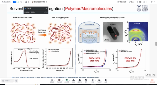 李栋辉博士在报告中重点介绍了该类器件柔性、可溶液加工、低成本及与传统硅基电池功能互补等优势,分析了有机半导体载流子迁移率偏低等瓶颈问题,并围绕“有机半导体分子聚集体调控-迁移率提升-器件功能集成”多机制耦合方向,阐述了薄膜微纳结构调控、分子聚集体研究及器件构筑集成等核心内容。报告会上,学院师生与李栋辉博士就研究细节和技术方向热烈交流,参会人员表示拓宽了学术视野、深受启发。