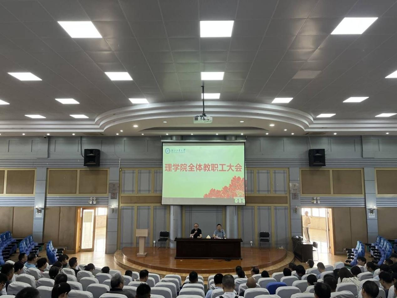 (杜文君 报道)9月1日上午,理学院(芯片产业学院)在科技楼二楼报告厅召开全体教职工大会。学院领导班子成员和全院教职工参加了大会。会议由院党委书记石勇主持。