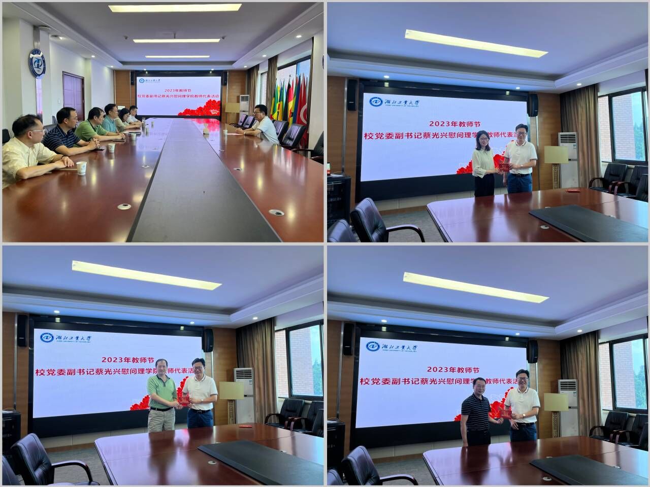 (杜文君 报道)9月6日下午,在第39个教师节来临之际,校党委副书记蔡光兴在行政楼四楼会议室对理学院教师代表进行了慰问交流,学院班子成员与学院教师代表参加座谈。
