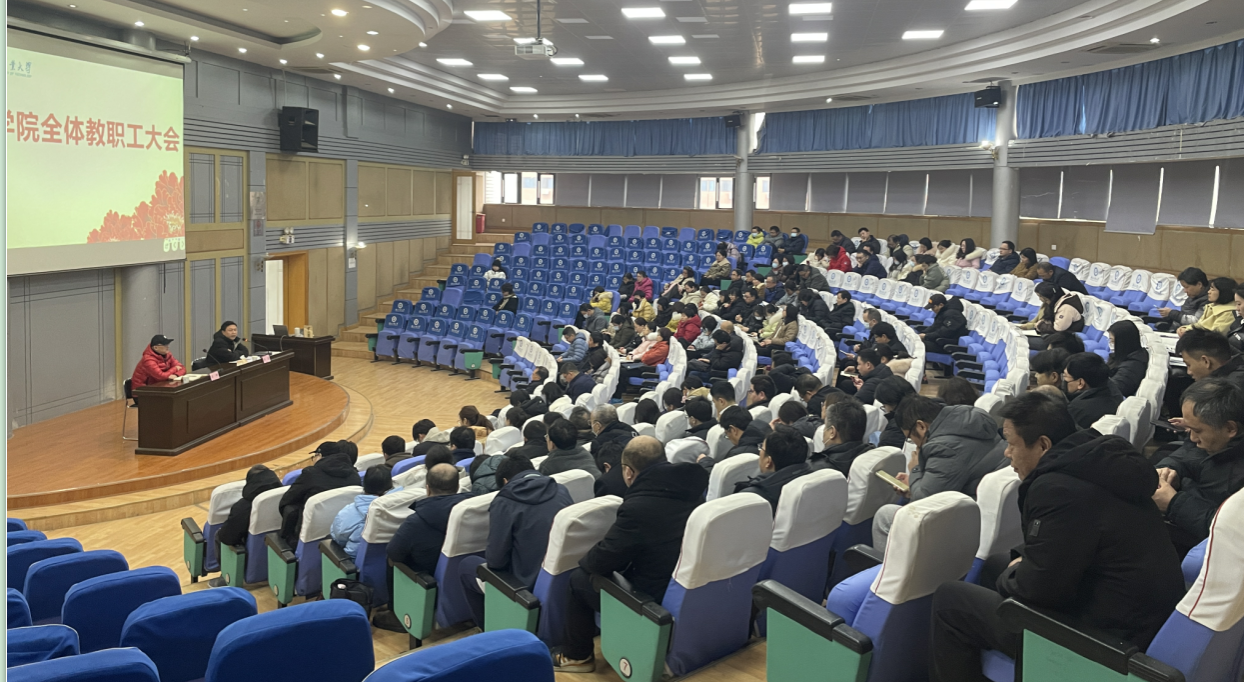 (姚金叶 报道)2月29日下午,我院召开新学期全体教职工大会,全面部署新学期各项工作,学院党政领导及全体教职工参加了会议,会议由院党委书记石勇主持。
