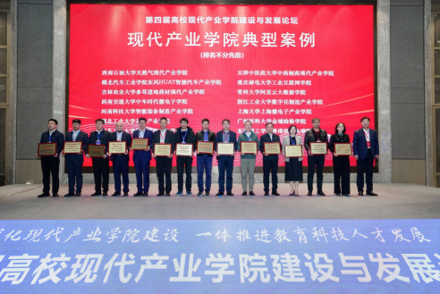 大会公布现代产业学院典型案例名单并颁发证书,重庆邮电大学工业互联网学院、广州医科大学金域检验学院、湖北工业大学芯片产业学院等15个学院的典型案例成功入选。